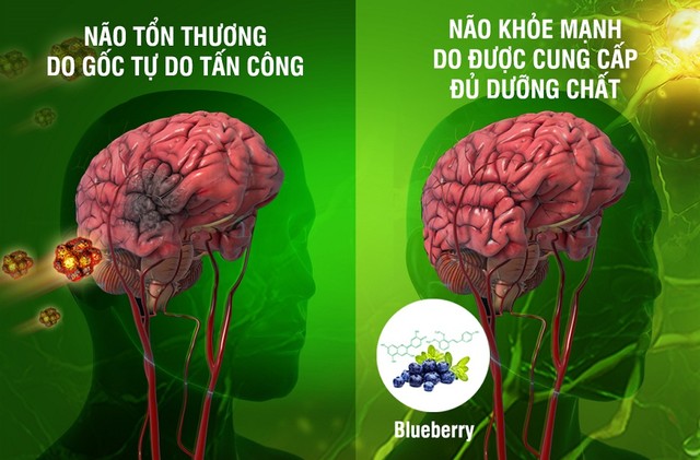 Các nhà khoa học Canada và Mỹ đã tìm ra hoạt chất Anthocyanin, Pterostilbene có trong Blueberry (xuất xứ Bắc Mỹ) có khả năng vượt qua hàng rào máu não, trực tiếp trung hòa các gốc tự do khiến chúng mất khả năng gây hại, đồng thời kích hoạt các chất chống gốc tự do tự nhiên của cơ thể, ngăn chặn và làm chậm sự hình thành mảng vữa xơ, huyết khối; nhờ đó khơi thông dòng máu lên não, cải thiện tình trạng thiếu máu não, ngăn ngừa đột quỵ.